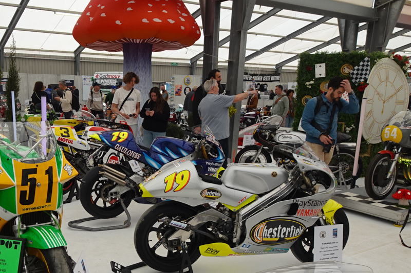 Outre les Nougier on pouvait voir une rare Norton Rotary à côté d’une 850 Commando JPN, la 250 Mach1s Ducati ex-Viura de 1966, la réplique de la 750 Honda du Bol d’or 1969, et les évocations de 500 de Grand Prix réalisées par Michel Ducros. Il avait commencé par installer un moteur de 500 RDLC dans un cadre d’YZR 125, puis il est passé à des répliques des YZR 500 de GP. Sa TZ 250 Olivier Jacques replica trônait à côté de la 500 Yamaha Sambiase, évoquant les machines du team Roberts des années 86/88. Avec la 500 RG de série améliorée par Jean Paul Lecointe et ses diverses Yamaha à cadre Chevallier ou Bimota, on avait presque une ligne de départ des GP d’autrefois.