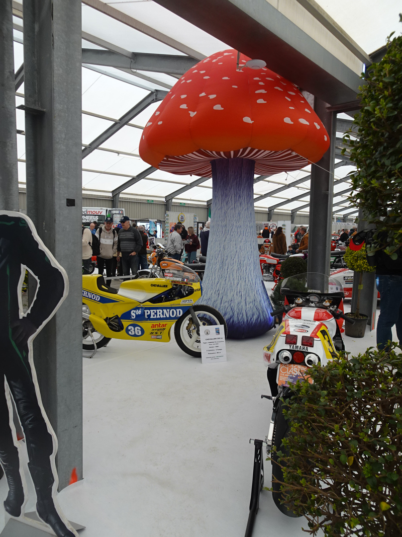 Le coin des motos, bien fourni, était le rendez-vous local des potes du sud, la grande question était de savoir d’où provenait cette éruption de champignons géants qui agrémentaient le stand principal. Comme quoi il y a toujours moyen de surprendre, même si l’explication est tout à fait prosaïque : la fille de l’un des exposants utilise ces structures comme décors pour des fêtes diverses.