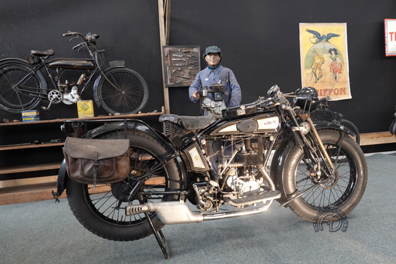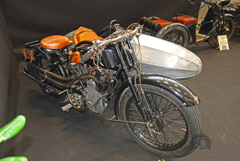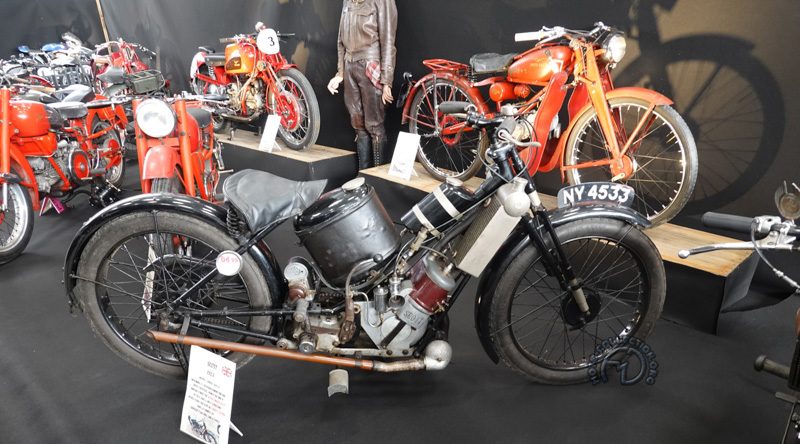 Caché dans le fond du Hall 4, un stand présentait une trentaine de belles motos d’avant-guerre, comme cette rare Raymo 350 de 1929 à moteur Blackburne fabriquée à Bourg-en-Bresse..