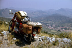 Bref cette bonne Super Tenor et moi parcourûmes quelques dizaines de milliers de kilomètres sans gros ennuis… ah, si, quand même un pignon de première éclaté en pleine Bretagne avec quelques édentés corollaires et un arbre de sortie tordu. « Euh, dis papa, pourrais-tu m’envoyer un mandat, j’ai un petit problème technique ». Vexé je l’échangeais bientôt ma Super Tenor une Aermacchi 250 la Verde, mais ceci est autre histoire.