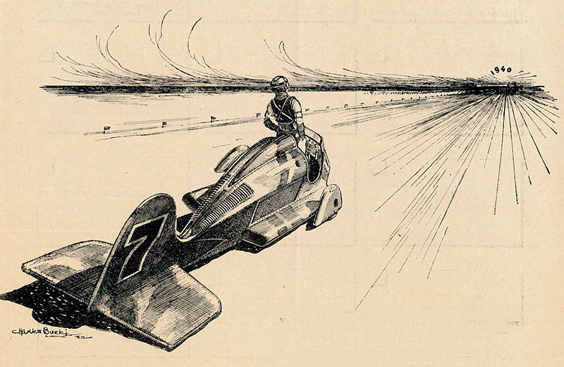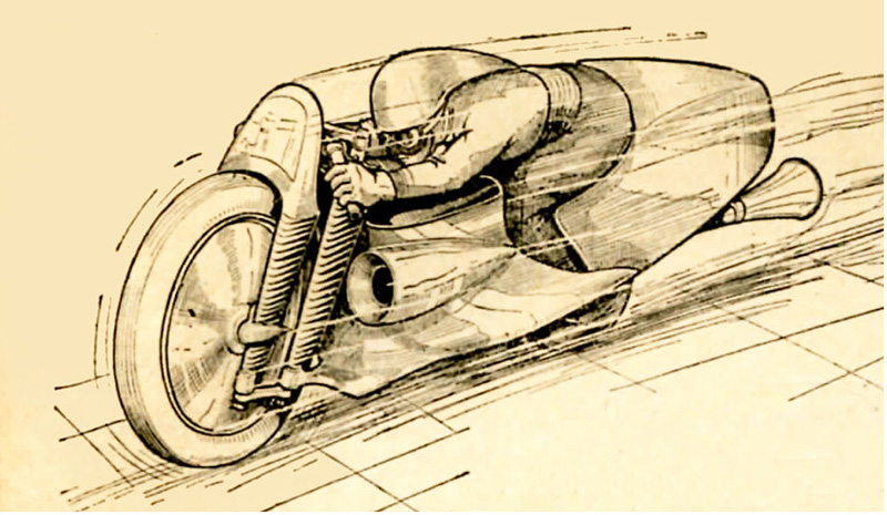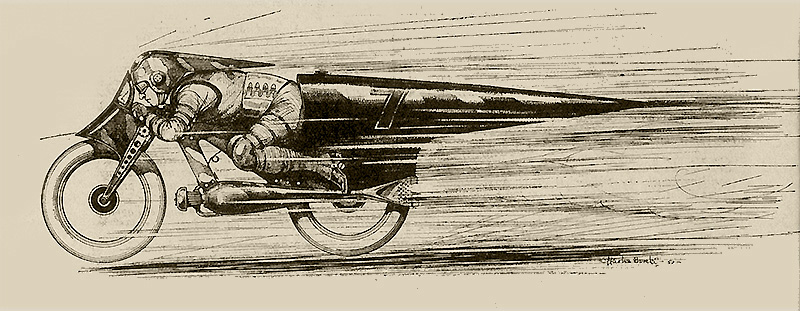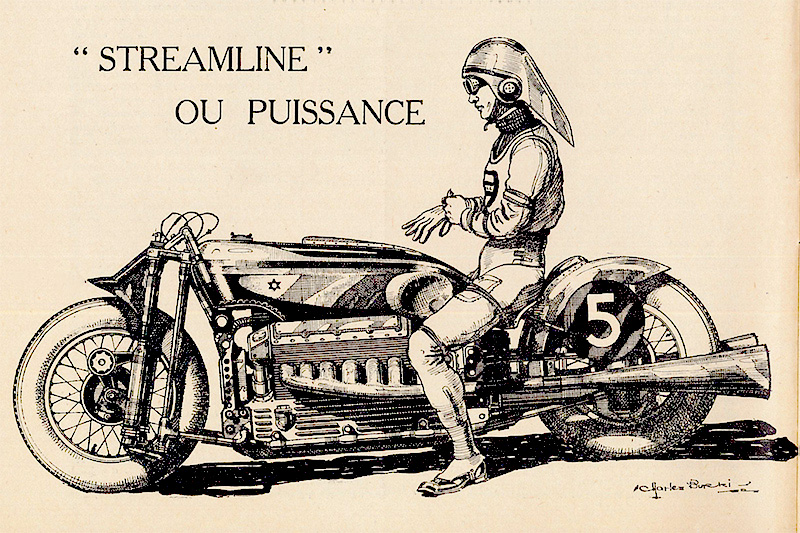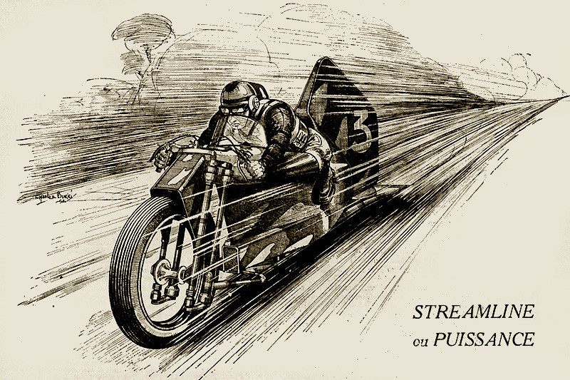 En 1933, Charles Burki réalise pour Moto Revue une série baptisée « Streamline ou Puissance » où il exprime ses vues sur les motos de record du futur.