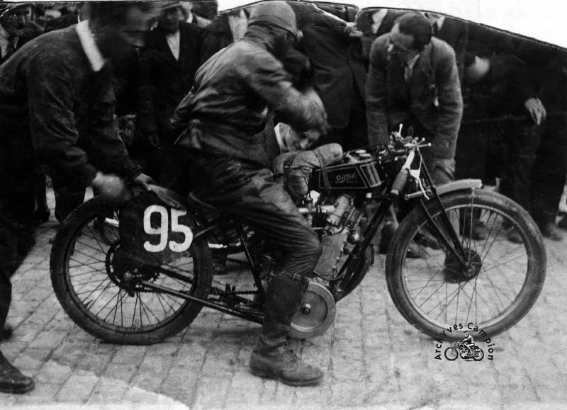 Kiecken pilote d’essai Gillet en septembre 1926 sur la Gillet Laguesse à refroidissement liquide qui vient de battre le record belge en 350 cm3 à plus de 145 km/h de moyenne