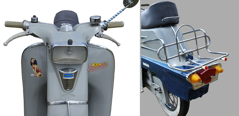 La fiche descriptive sur la Superia Jet produite de 1961 à 1968 vous dit déjà tout sur la brouille entre les frères Aimé et Rémi Claeys, l’un continuant à diriger Flandria qui produisait ses propres moteurs, tandis que Remi héritait de l’usine spécialisée dans les cadres de vélos et autres constructions tubulaires. De la date de leur séparation en 1956, jusque vers 1964, les modèles produits par Superia ne sont que guère que des clones en réponse à leurs équivalents chez Flandria. Tout changera ensuite, sans grandes innovations d’ailleurs, et Superia finira dans les trois ans précédant sa fermeture en 1972 par ne produire que des Testi Champion et Grand Prix assemblés sous licence en Belgique.