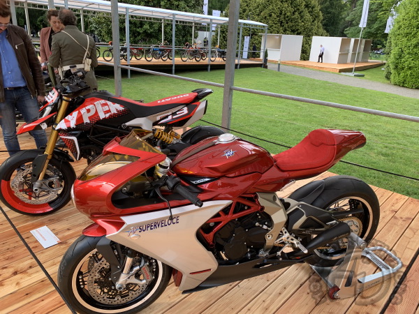 Bien peu fournie, une section prototypes présentait une MV Agusta 800 Super Véloce de 2018 et une Ducati 950 concept Hypermotard, bien dans les tendances de l'année mais, quand même un peu déplacées dans ce cadre. Dommage que d'autres constructeurs ne jouent pas le jeu.